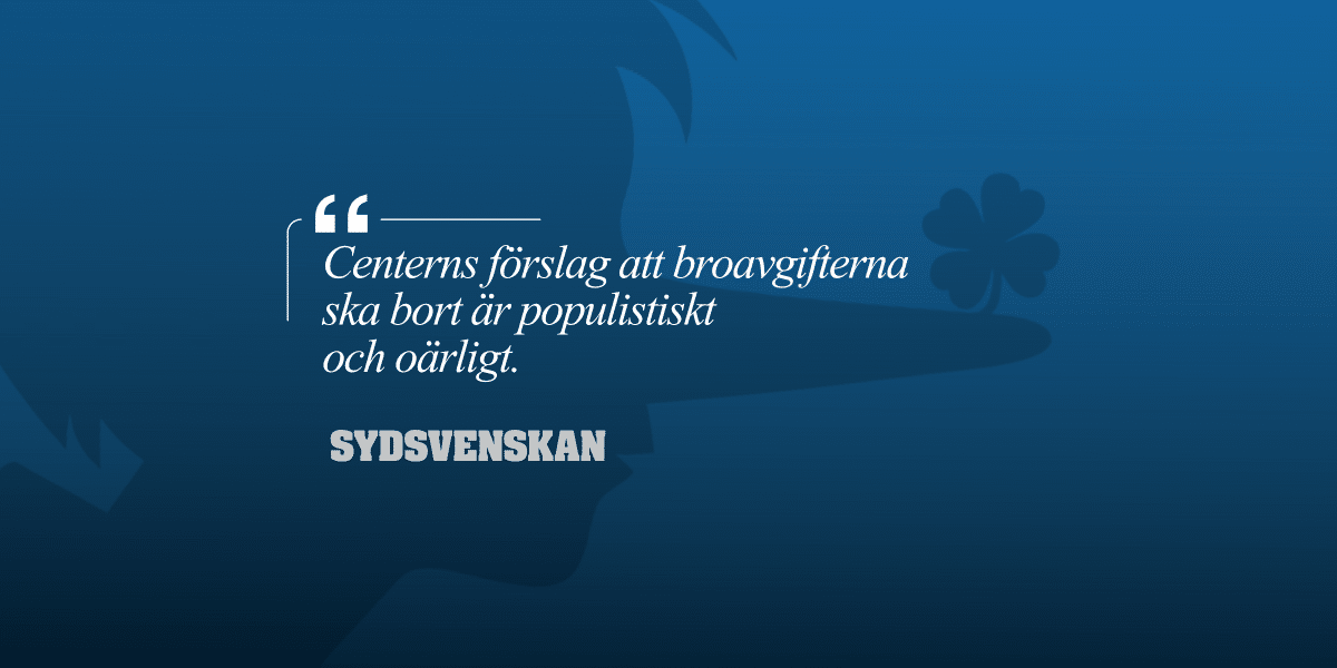 Centerns förslag att broavgifterna ska bort är populistiskt och oärligt.